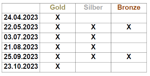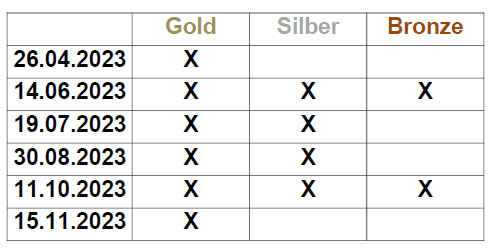 Ab 2026 finden sechs GOLD-, vier SILBER- und zwei BRONZE-Reinigungen statt.